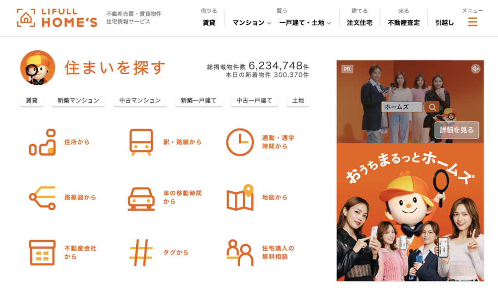 LIFULL HOME’Sも3,800社以上と提携しており、幅広いエリアに対応しています。